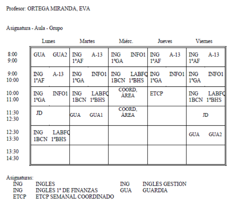 • Horario Grupos